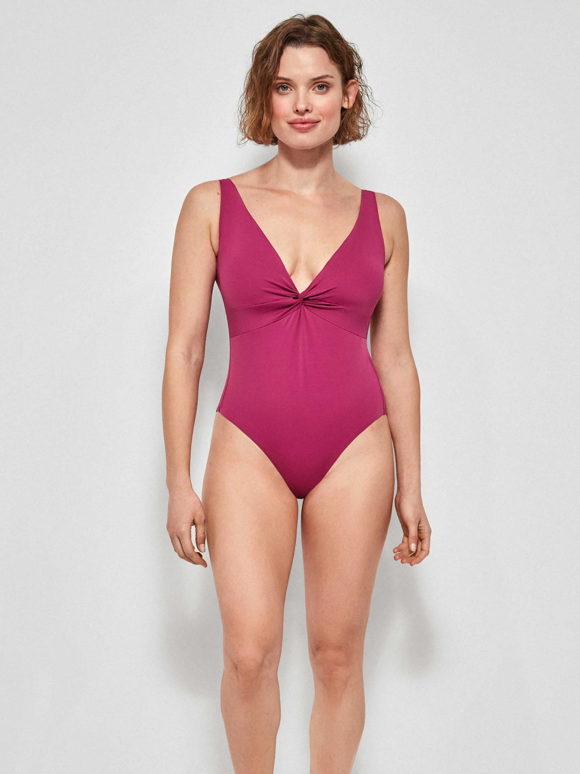 Diseñado para realzar la silueta con elegancia y comodidad, este bañador plus size de efecto control es la elección perfecta para mujeres que buscan estilo sin renunciar al soporte. Cuenta con copas de foam suaves (sin aros) que aportan una forma natural al busto, mientras que el detalle de nudo en el escote añade un toque favorecedor y estilizado.