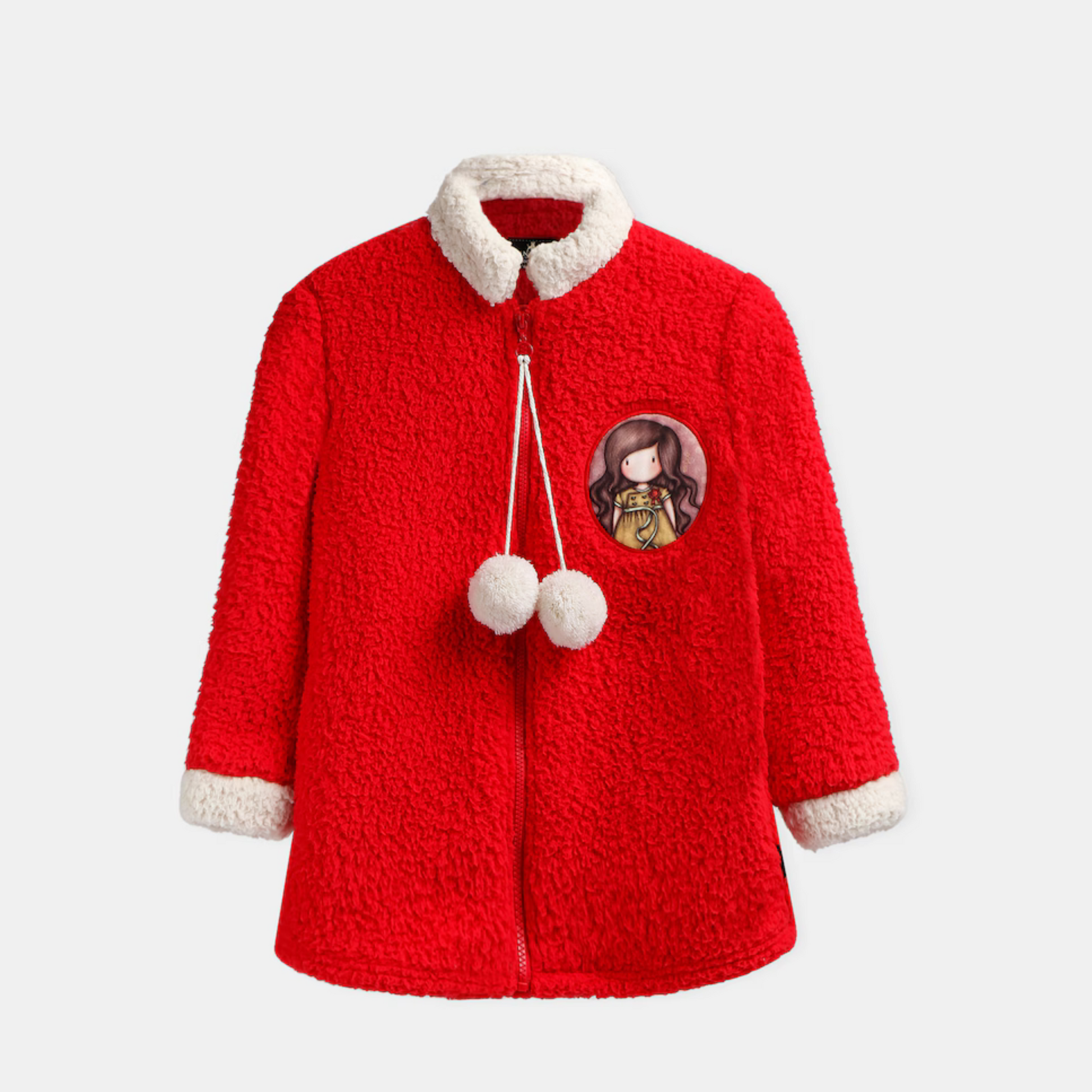 La Bata de Niña Calentita Tejido Borrego Santoro de Admas es la prenda perfecta para mantener a las más pequeñas abrigadas y cómodas durante los días fríos. Fabricada en suave y cálido tejido borrego, esta bata ofrece una sensación acogedora, ideal para el invierno. Su vibrante color rojo y el encantador diseño de la famosa muñeca Santoro aportan un toque de ternura y estilo, haciendo que tu niña se sienta especial y confortable.