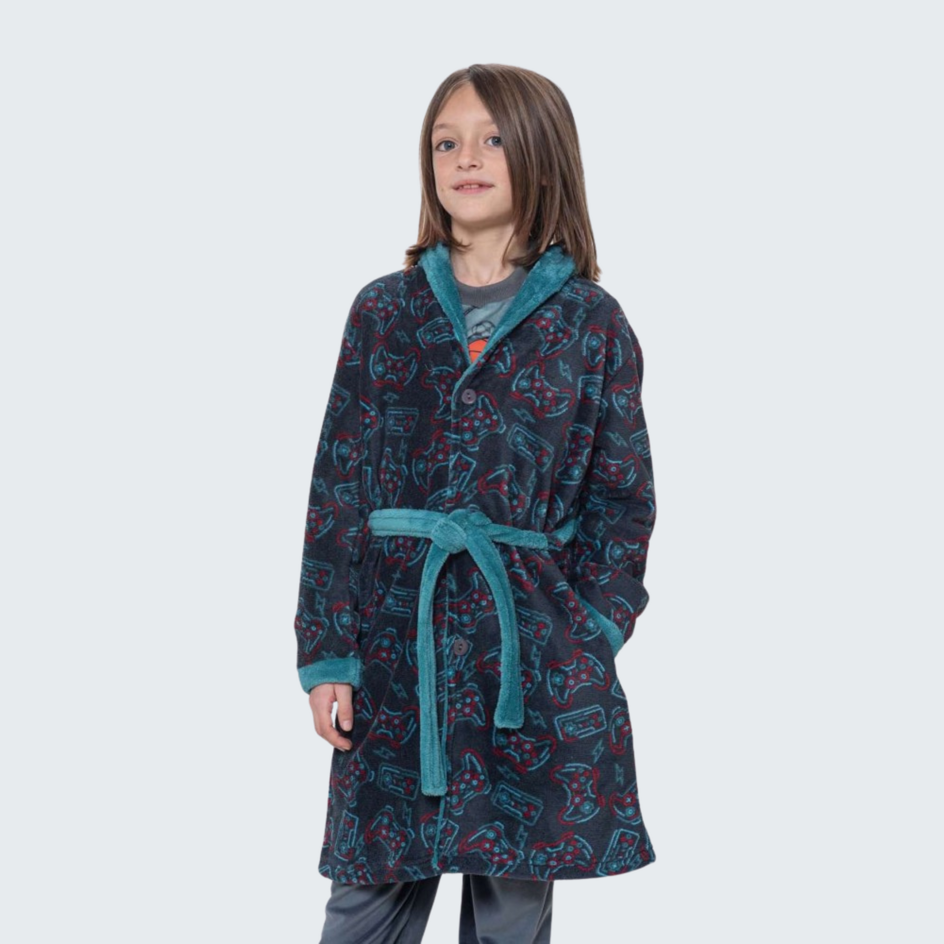Con un estilo juvenil y moderno, esta bata es perfecta para el descanso o para estar cómodo en casa. ¡Haz que tu niño se sienta como un verdadero campeón de los videojuegos con esta bata de Kinanit!