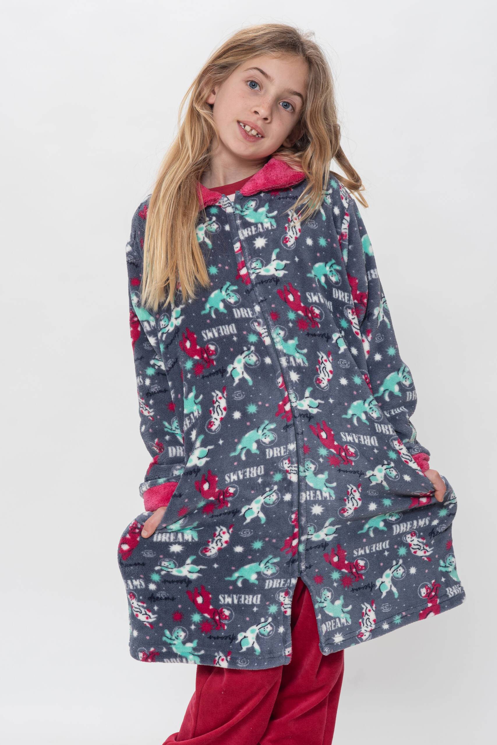 Esta bata es perfecta para que tu niña se sienta abrigada y feliz mientras explora su imaginación en su propio "universo de gatos espaciales". ¡Una prenda esencial para la temporada de frío!