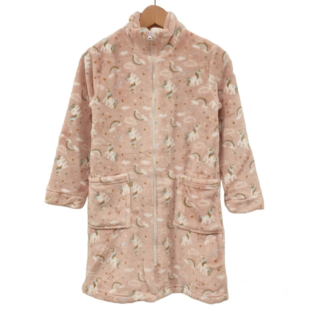 La Bata Infantil Unicornios y Arcoíris de Linn es la prenda perfecta para mantener a las pequeñas cómodas y abrigadas durante los días más fríos. Confeccionada en suave coralina, esta bata es ideal para envolver a tu niña en calidez y confort. Su encantador diseño de unicornios y arcoíris en tonos de blanco y colores sobre un fondo rosa la convierte en una opción alegre y divertida para la temporada invernal.