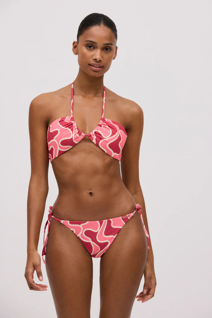 Descubre el equilibrio entre estilo y comodidad con este conjunto de bikini anudado con estampado abstracto. Su diseño versátil y favorecedor es ideal para acompañarte en cada plan veraniego.