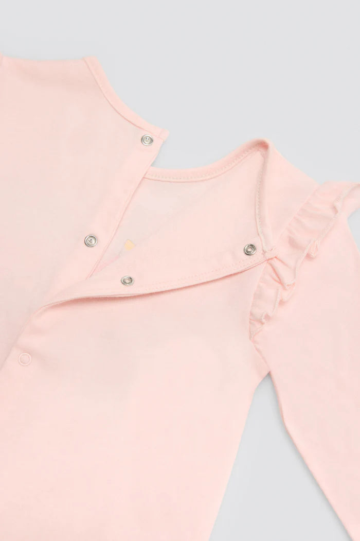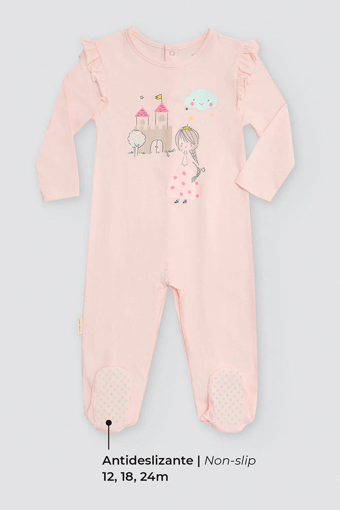 Pelele de algodón para bebé de manga larga, diseñado para ofrecer máxima suavidad, confort y seguridad desde los primeros meses. Este pijama enterizo para bebé está confeccionado en algodón 100% natural, un tejido transpirable, hipoalergénico y delicado con la piel, ideal para el descanso y el uso diario. Su diseño incluye cuello redondo y cierre con botones de presión que facilita el cambio de pañal de forma rápida y cómoda sin necesidad de desvestir completamente al bebé. El encantador estampado infantil con castillo, nube y detalles en tonos suaves aporta un estilo dulce y cuidado, perfecto para recién nacidos y bebés. Además, incorpora suela antideslizante en las tallas de 12, 18 y 24 meses, proporcionando mayor seguridad en los primeros pasos y evitando resbalones. Este pelele largo para bebé es una prenda imprescindible en cualquier canastilla, ideal tanto para dormir como para estar en casa con total libertad de movimiento y bienestar.