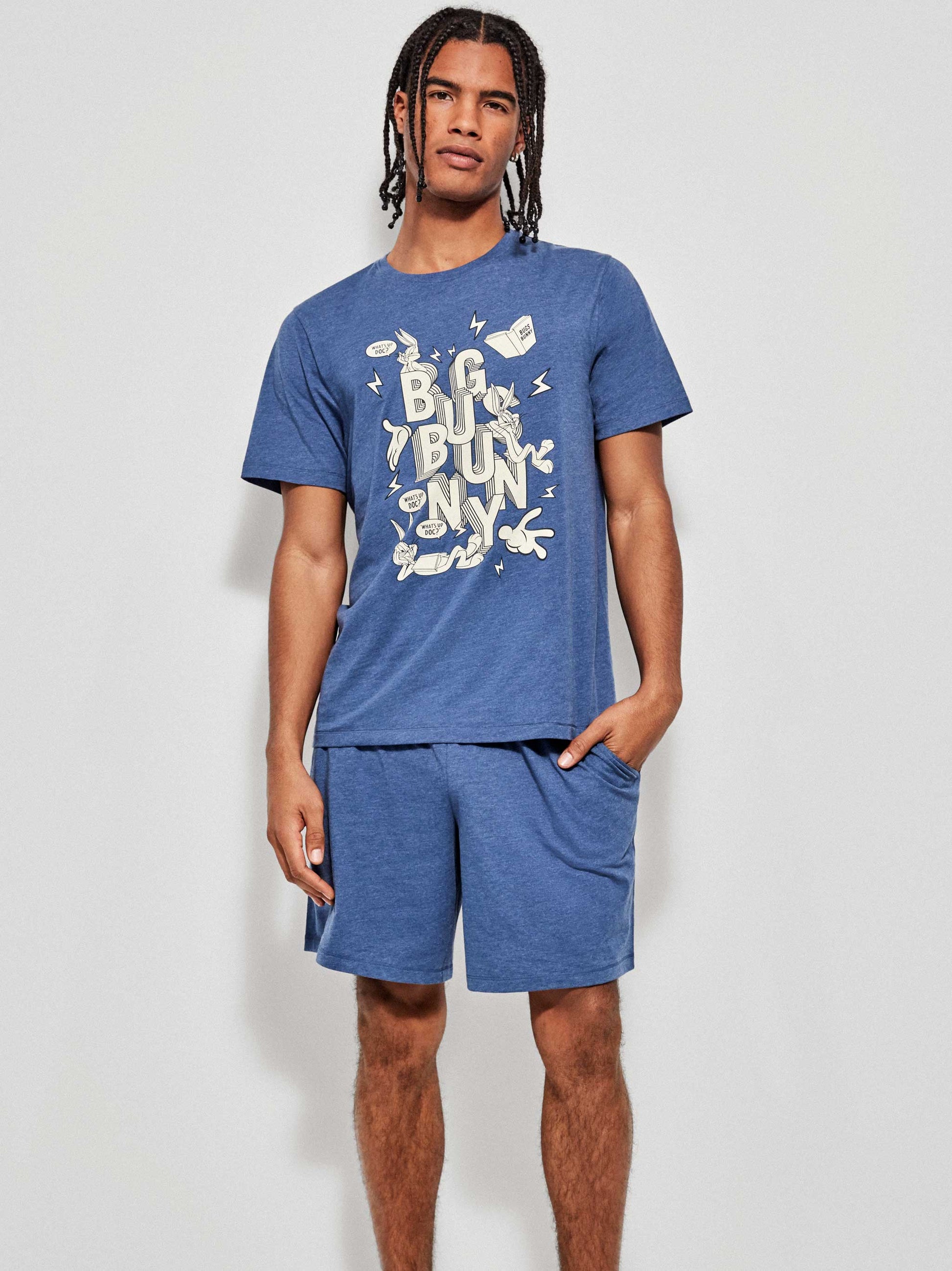 Si te gusta el estilo relajado con un toque nostálgico, este pijama corto para hombre con print de Bugs Bunny es justo lo que necesitas. Confeccionado en una mezcla de algodón y poliéster, es cómodo, fresco y perfecto para las noches de verano o para relajarte en casa con todo el estilo de los clásicos Looney Tunes.