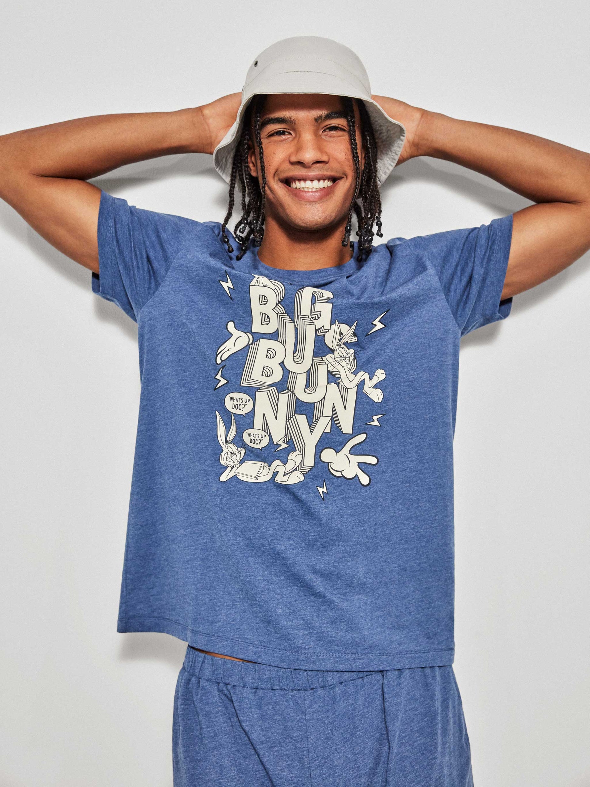 Camiseta de manga corta y cuello redondo, en color azul noche con estampado frontal de Bugs Bunny