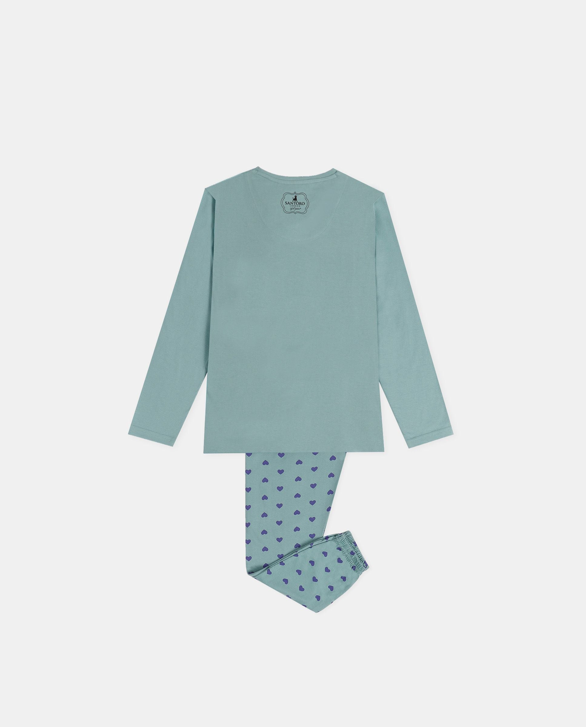 - Camiseta de manga larga: Con cuello redondo y un estampado posicional en color aqua, con detalles flocados que hacen de esta camiseta una pieza única. La camiseta es de punto estampado, proporcionando comodidad durante toda la noche.
