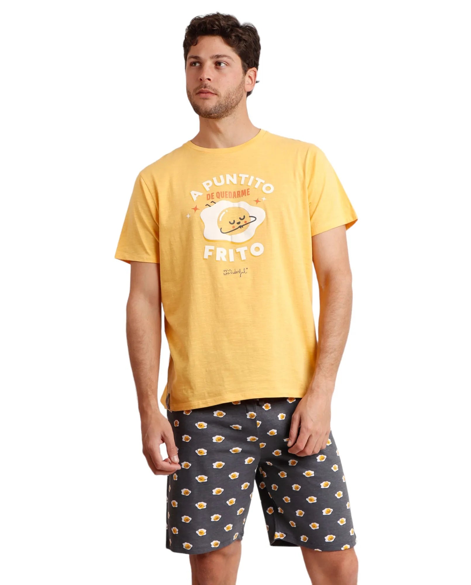 ¿Buscas un regalo original o un pijama cómodo con un toque de humor? Este pijama corto de hombre Mr. Wonderful "A punto de quedarme frito" es la elección ideal. Con un diseño divertido y fresco, está pensado para las noches de verano o para estar en casa con estilo y buen humor.