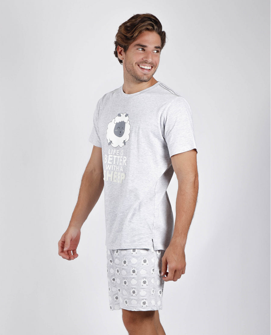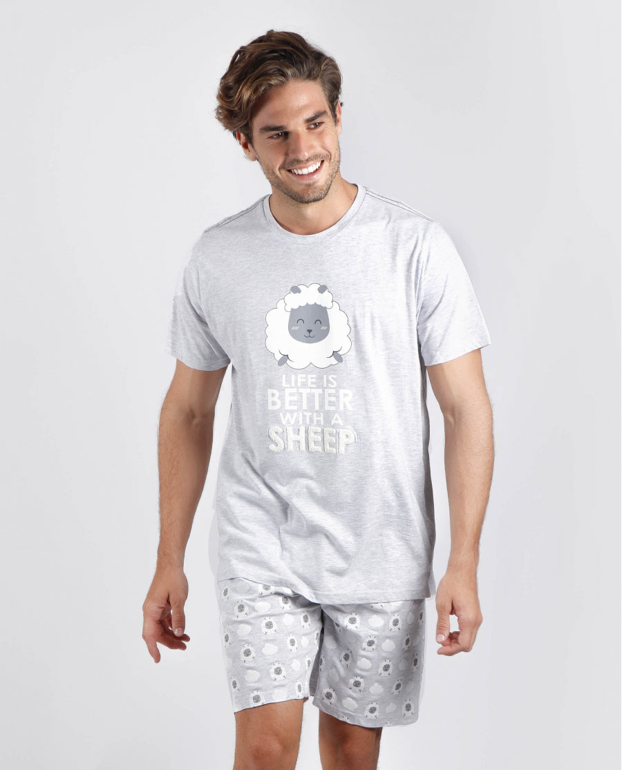 PIJAMA MANGA CORTA LIVE IS BETTER WITH A SHEEP
