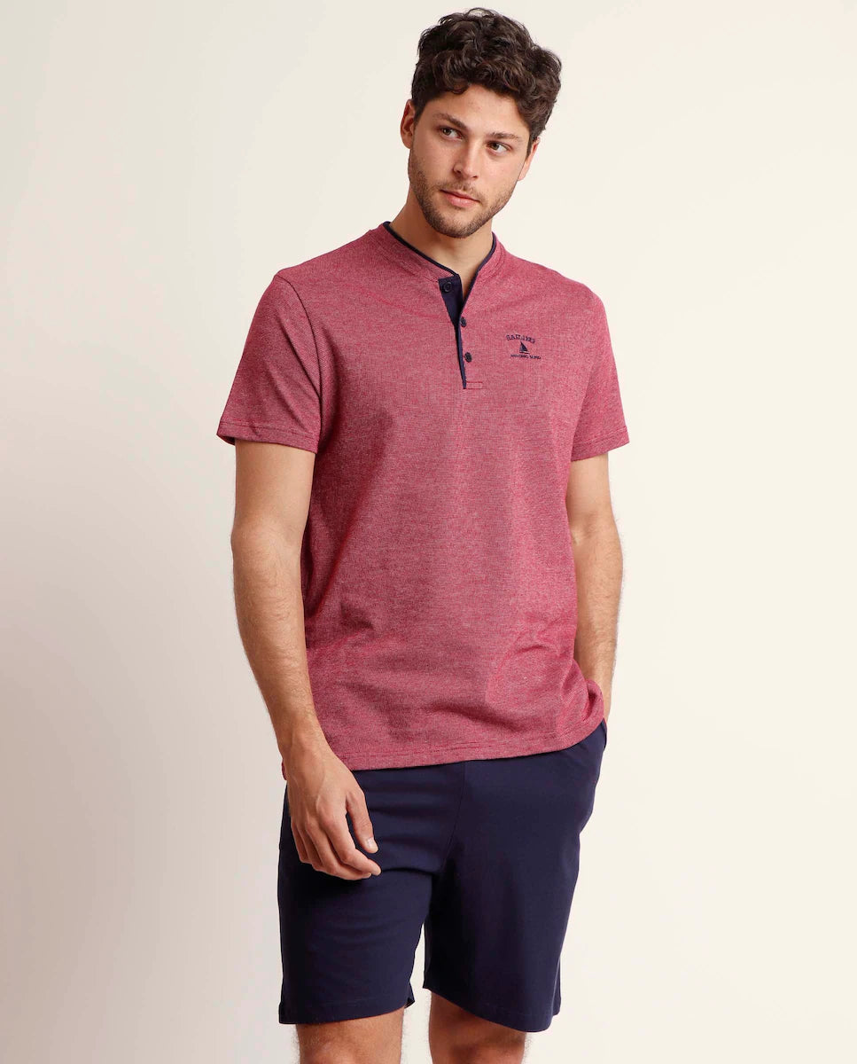 Pijama de dos piezas para hombre, con camiseta de manga corta y pantalón corto.