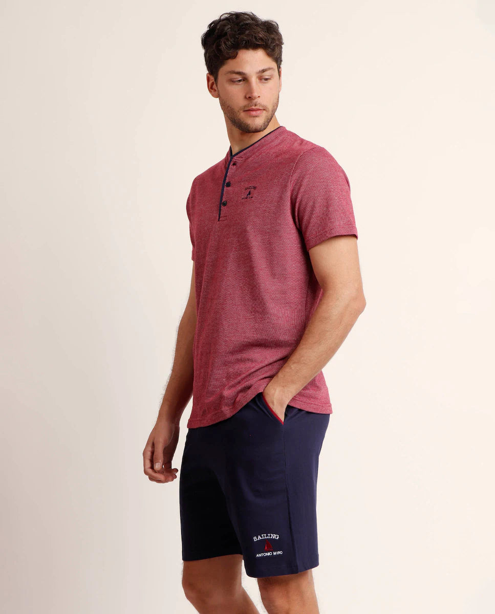 Descansa con estilo y frescura este verano con el pijama exclusivo de Antonio Miró para hombre, confeccionado en punto piqué 100% algodón, un tejido especial que ofrece mayor transpirabilidad, elegancia y suavidad al tacto. Diseñado por Aznar Innova, este conjunto une confort y diseño atemporal en una prenda perfecta para el descanso o el homewear.