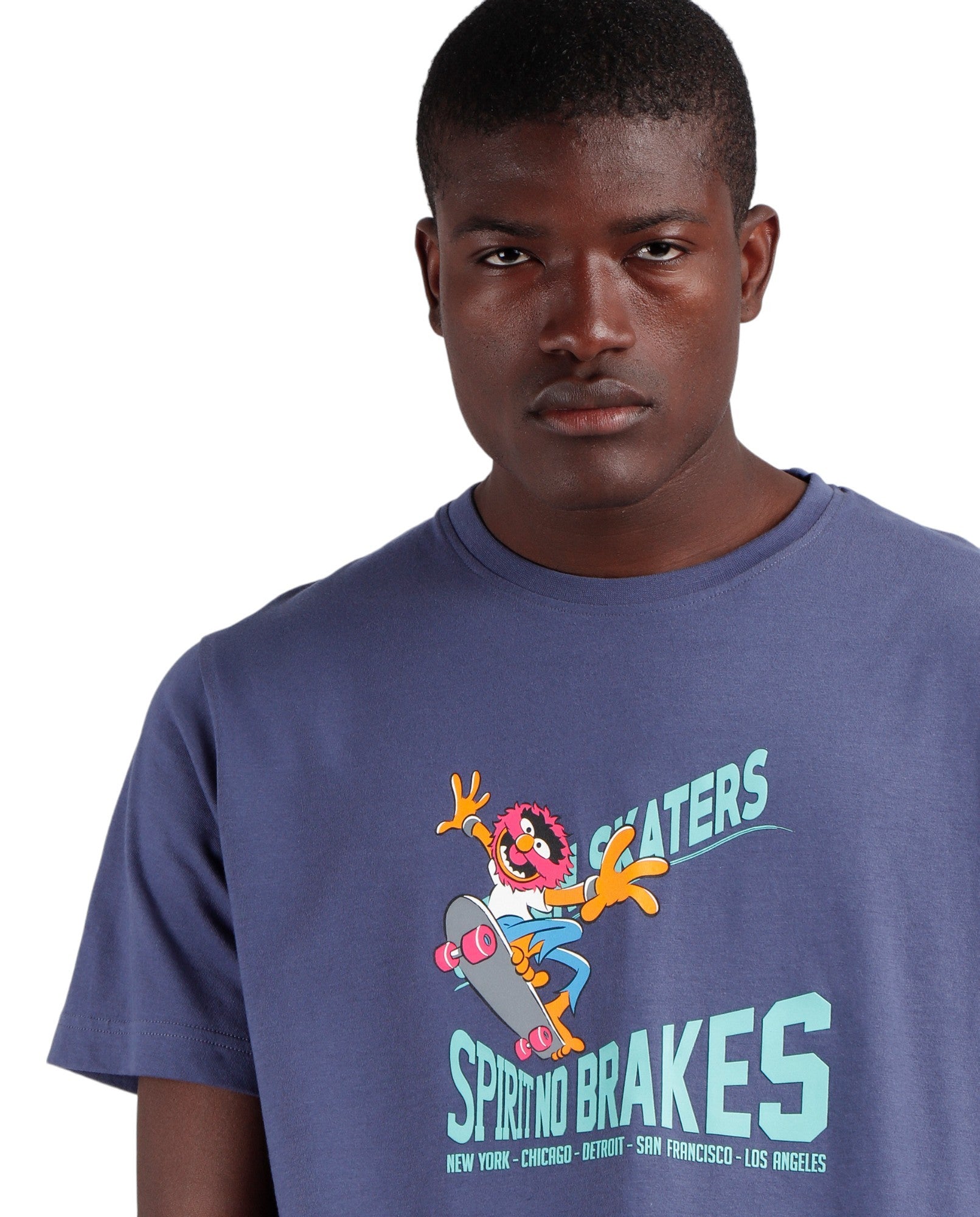 Camiseta de manga corta en color marino, con cuello redondo y estampado frontal de Animal (The Muppets) estilo skater, con detalles en relieve