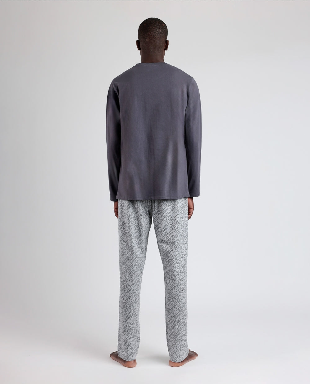 · Pijama de punto de algodón, manga larga y pantalón largo.
