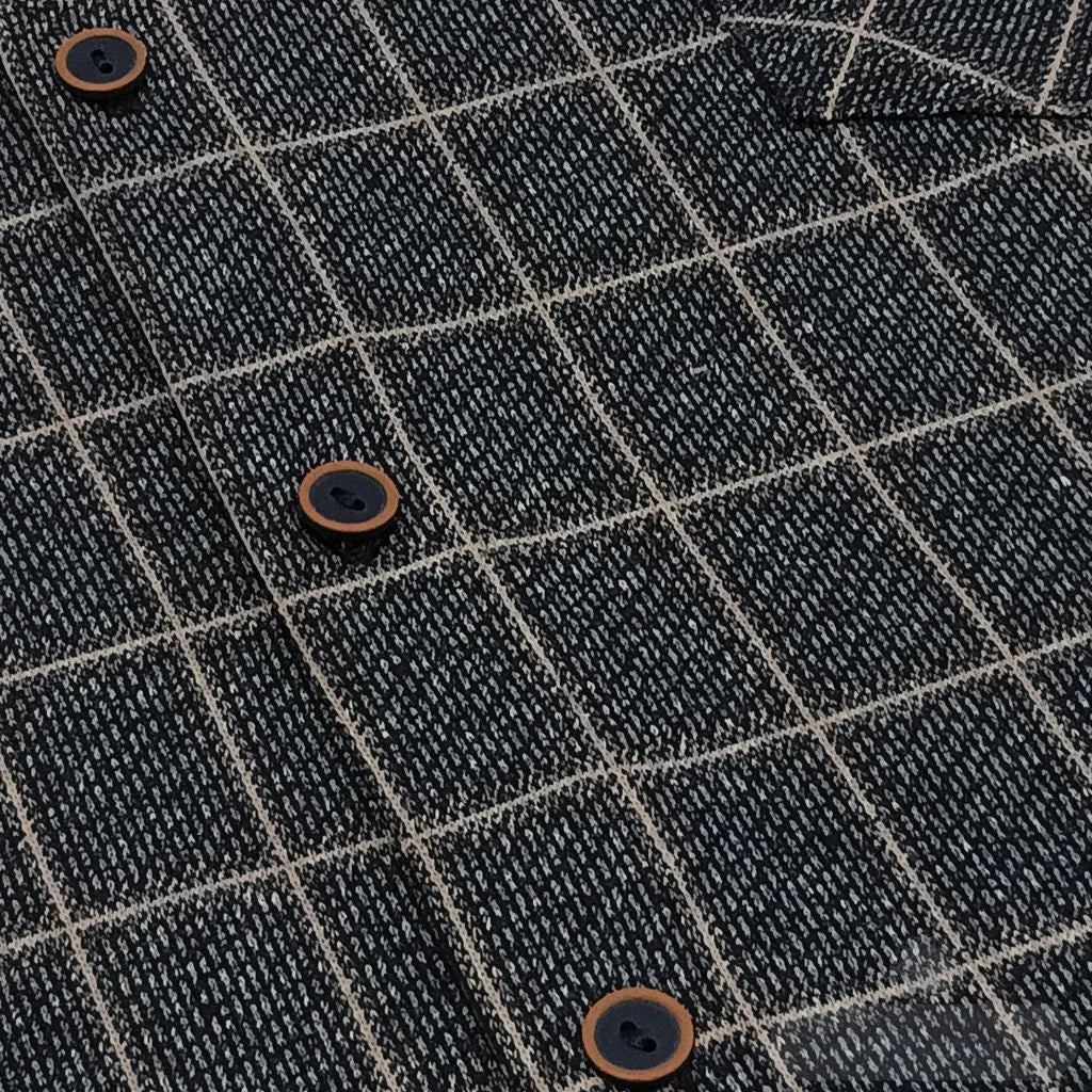 • Chaqueta abotonada tipo camisa, con patrón de cuadros marinos jaspeados.