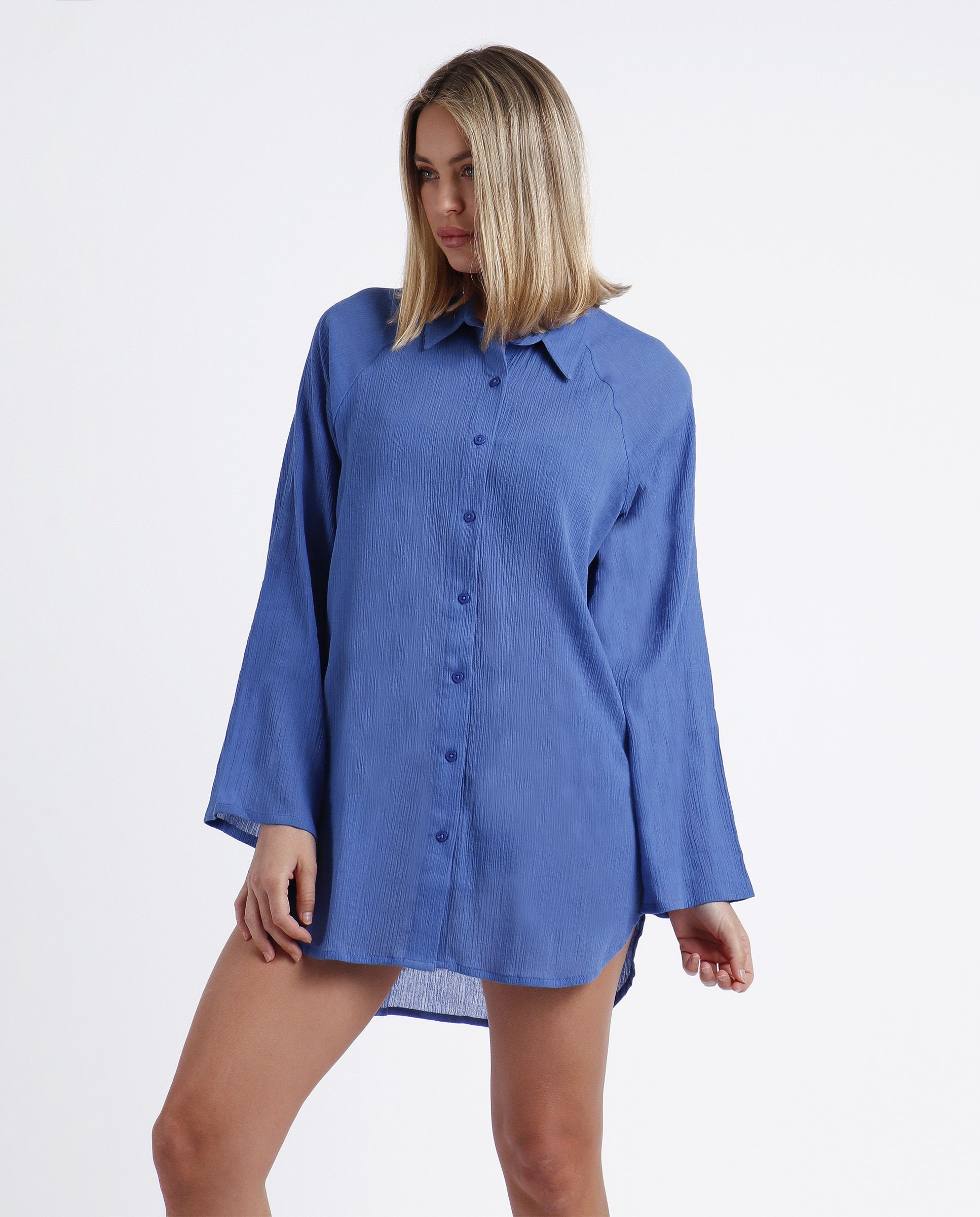 VESTIDO CAMISERO MANGA LARGA PLAYA BASIC BLUE